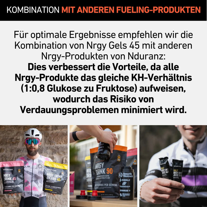 Du brauchst ein effizientes, magenfreundliches Gel, das dich mit Energie versorgt und hydriert? Nrgy Gel 45 ist genau das Richtige für dich.
