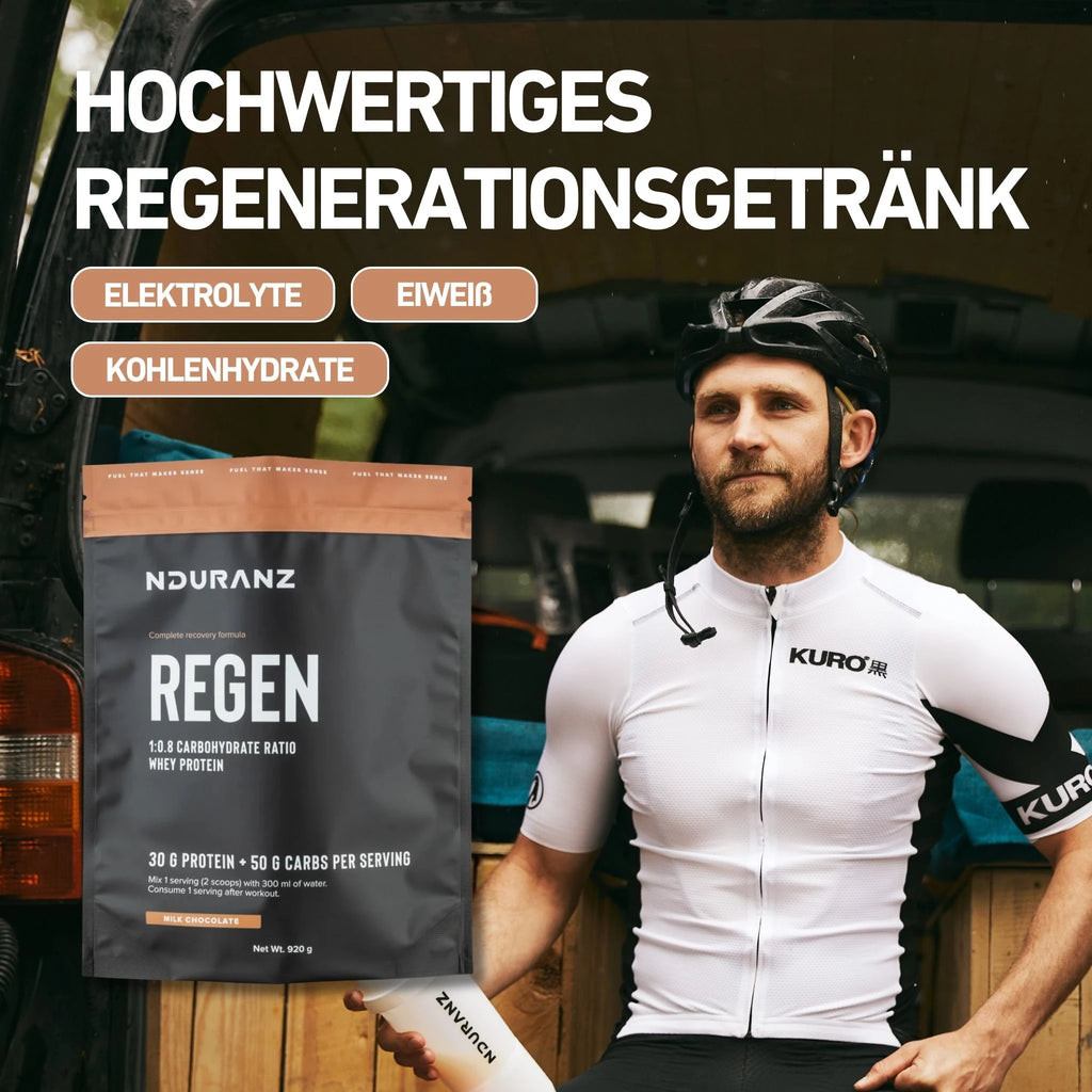 Sorge für eine optimale Muskelregeneration nach intensiven Ausdauerübungen mit Regen, dem hochmodernen Regenerationsgetränk von Nduranz!